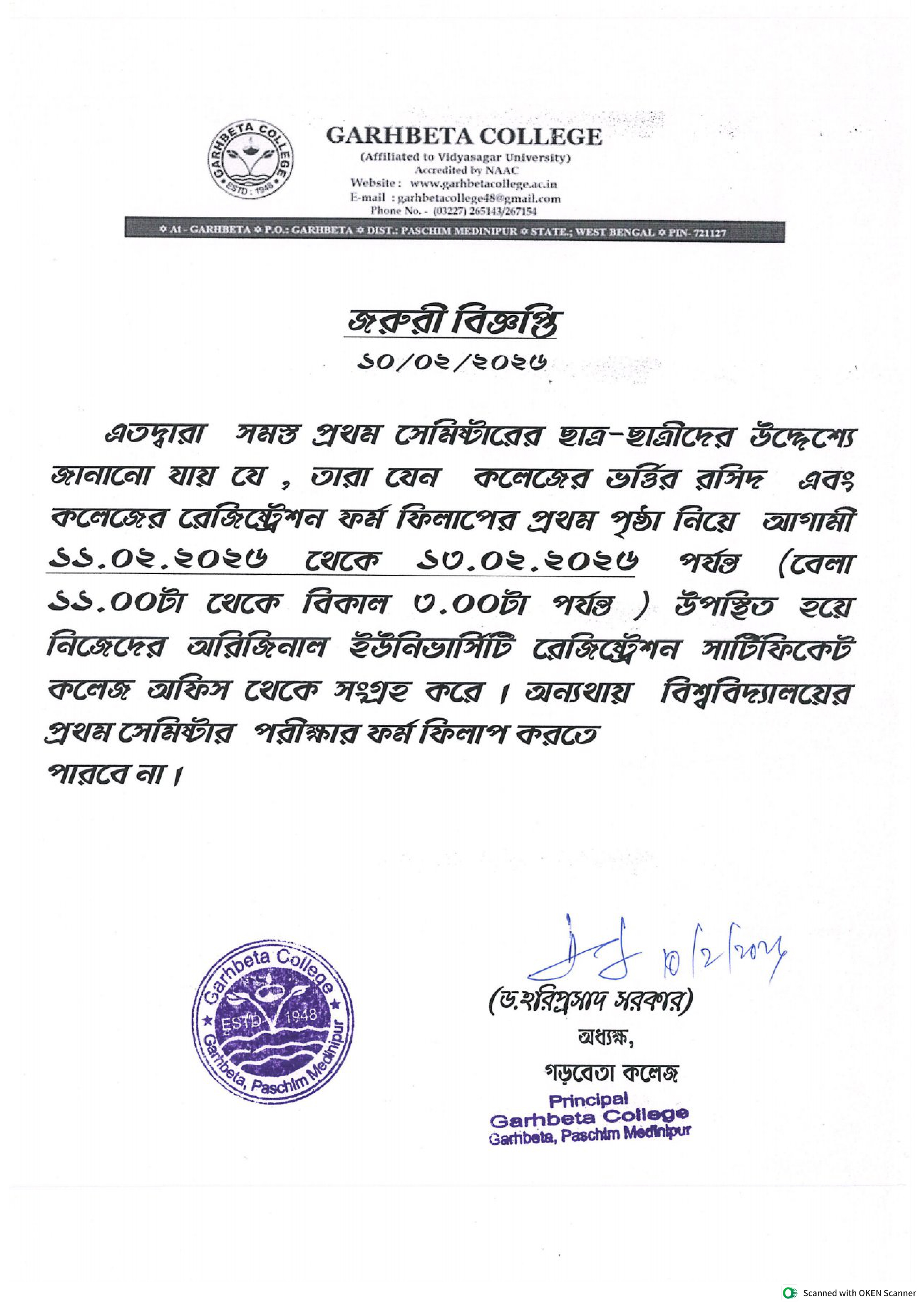It is my immense pleasure to welcome all the students joining Garhbeta College for pursuing their higher studies during the session 2022-2023. Garhbeta College is one of the oldest colleges in the undivided Midnapore District in the post independence period. The college was established on 13th August, 1948 and we have celebrated the 75th years of establishment on 13th August, 2022 in a befitting manner. A three day programme has been organized on and from 13-15th August,2022 to celebrate the historic moment of our college. This academic session is very much important to all of us as it is treated as ‘75th Anniversary Year’ of Garhbeta College which will be completed by a similar colourful occasion on 13th August , 2023. A beautiful souvenir has been published to commemorate the great occasion. The college authority has decided to construct a ‘SMARAK BHAVAN’ ......